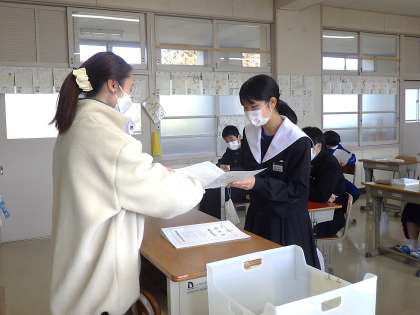 懐かしい思い出の写真がたくさん詰まったアルバムを眺めたあとは、ドキドキの通知表の配付です。担任より一人一人にコメントが添えられていました。