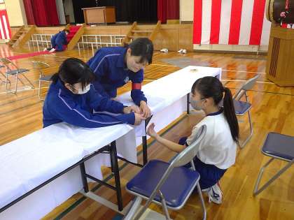 活動前に代表委員会の生徒が、仲間のモチベーションをあげています。おかげでその後の活動では、任された分担以外にもしっかりと気づいて動くことができていました。