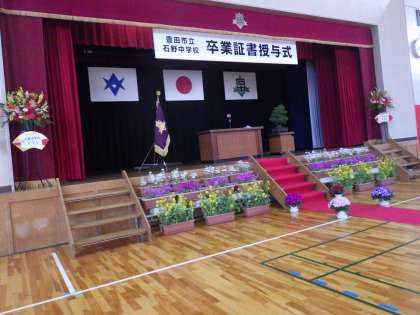 1・2年生の献身的な活動ぶりで、立派な卒業式会場が完成しました。