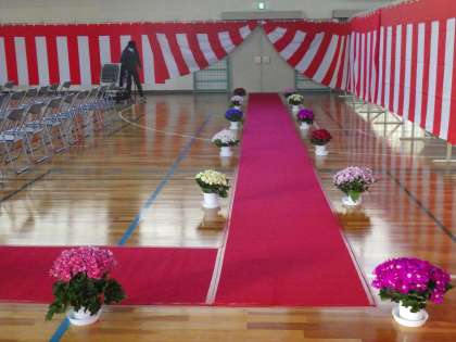 1・2年生の献身的な活動ぶりで、立派な卒業式会場が完成しました。