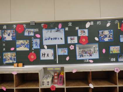 昨日、1・2年生がこの環境を整えてくれました。また、黒板には担任からのメッセージも書き込まれています。