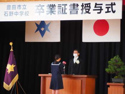 卒業生の「答辞」。仲間や後輩たちとの思い出をよみがえらせながらも、支えてくださった多くの方への感謝の気持ちを伝えていました。そして、新しい生活への決意と覚悟も述べていました。