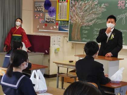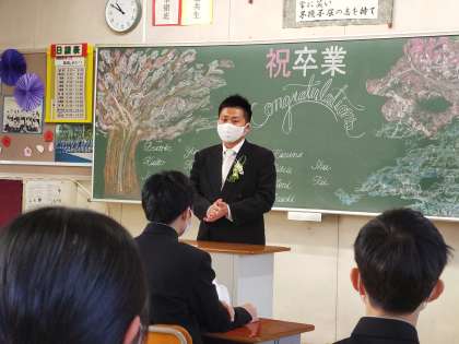 学年主任から最後のメッセージが贈られました。今年度は家族の方も教室に移動していただき、その様子を参観していただきました。