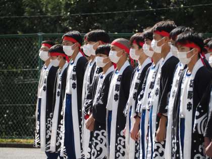 石中ソーランの伝統を受け継ぐため、1・2年生が卒業生に渾身の演武を披露していました。