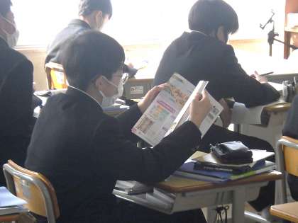 「鎌倉幕府が滅んだあと、政治や社会はどのように変化したか」をテーマに学習に取り組んでいました。ヒントとなるのが室町時代。各自で調べた内容をもとに、2つの時代を比較しながら学習を深めていました。
