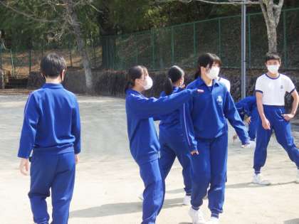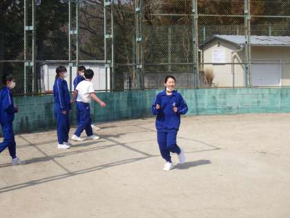 昨日に引き続き絶好のの天気のもと、運動場で行われたこの授業。仲間同士で声援を送り合いながら、楽しそうにプレーしていました。