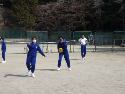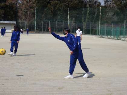 昨日に引き続き絶好のの天気のもと、運動場で行われたこの授業。仲間同士で声援を送り合いながら、楽しそうにプレーしていました。