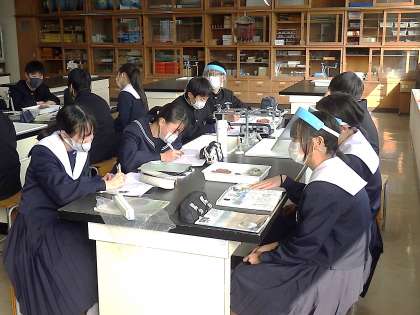 久しぶりの理科室で、化石の観察を行っていました。また、今日の学習テーマは「なぜ化石は価値があるの?」でした。