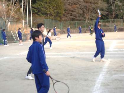 帰りの会が終わるとすぐにテニスコートに集まってきます。ボールやネットの準備、コートのライン引きなども手際よく済ませます。短い時間も目いっぱい活動。そして、下校に間に合うよう、片付けの動きも非常に強力的…。