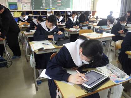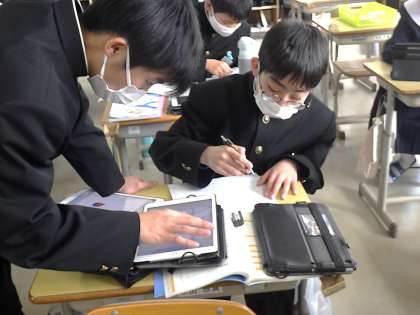 これまでに学習してきた説明文の書き方も参考にしながら、レポート作成に必死に取り組んでいました。