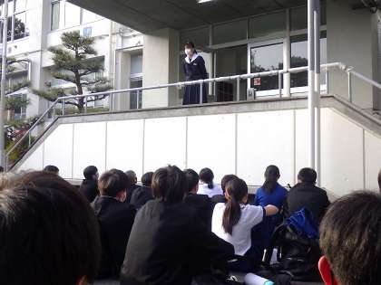 先頭に立って同じ通学段の生徒を待つ、団長(候補者)の顔ぶれが変わりました。3年生がいなくなったことをあたらめて実感しているようでした。また、改めて責任の重さも実感しているようでした。