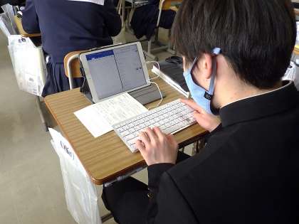 「魅力を効果的に伝える」をテーマに説明文の学習に取り組んでいました。今回のお題は「好きな楽曲」。日頃から音楽を聴いている生徒にとっては、最高のお題です。一方、あまり音楽を聴かない生徒も、CMソングやアニメのテーマソングなど、これまでに印象に残っているものについて紹介していました。