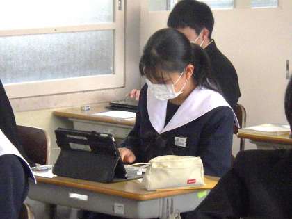 「魅力を効果的に伝える」をテーマに説明文の学習に取り組んでいました。今回のお題は「好きな楽曲」。日頃から音楽を聴いている生徒にとっては、最高のお題です。一方、あまり音楽を聴かない生徒も、CMソングやアニメのテーマソングなど、これまでに印象に残っているものについて紹介していました。