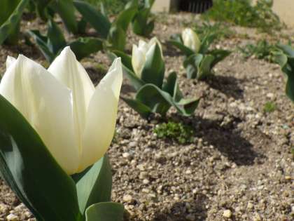 日中の日当たりが抜群に良い体育館南側の花壇では、チューリップたちが一斉に開花を始めました。その様子は、やる気いっぱいの生徒たちの姿と重なるところがあります。