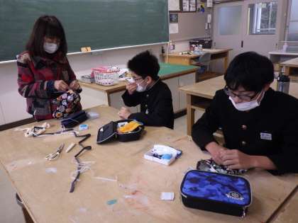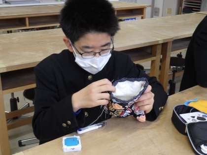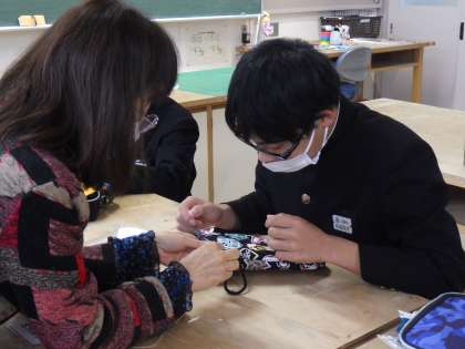 手作りミトン(鍋つかみ)の製作に取り組んでいました。型を切り、すべてを手縫いで仕上げていきます。丁寧な作業は、プレゼントする家族が喜んでもらうためです。素敵な作品が出来上がるよう期待したいと思います。