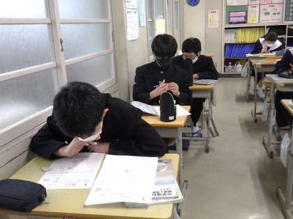 これまで学習した内容を単元別のフリントを使って復習していました。解けない問題は、教科書やノート、資料集などで確認し、学び直していました。