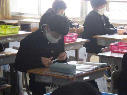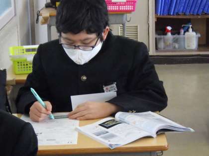 年間の総復習を単元ごとのプリントを活用して取り組んでいました。教科書やノートを見返し、当時習ったことも一緒に思い出していきます。1年生のまとめと2年生への学習の準備が、着々と進んでいます。