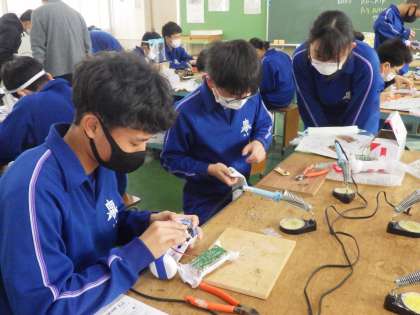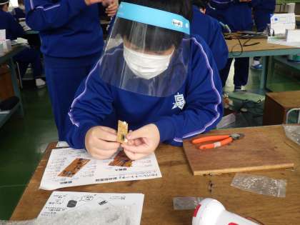 セパレートトーチづくりもいよいよ大詰めです。完成した生徒が作業中の生徒のもとに行き、アドバイスを送っています。