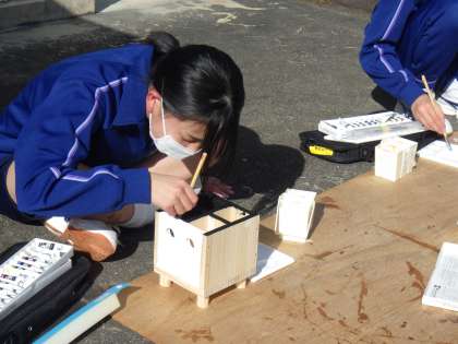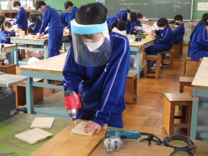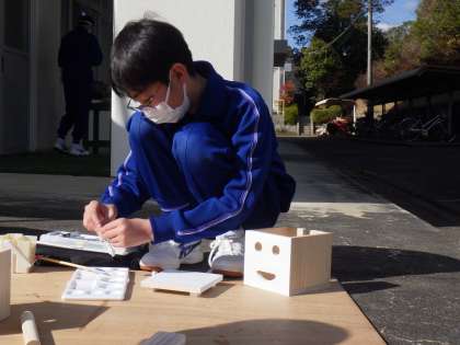 木製品の加工もいよいよ完成間近といったところです。組み立て後の微調整や表面の仕上げ、色塗りなどを行っている生徒がほとんどでした。