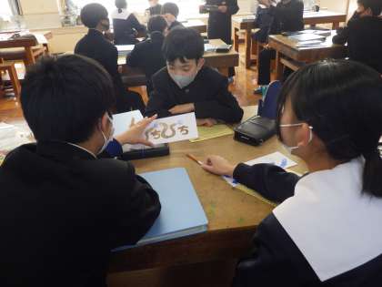 オノマトペの作品も完成し、今日は自身の評価に取り組んでいました。また、仲間にもアドバイスをもらったりして、作品のアピール文を書いていました。