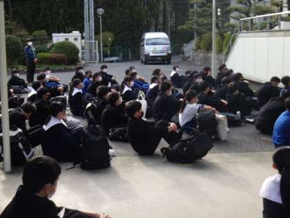 新団長が先頭に立ち、メンバーの確認をしています。その後、係の先生から会議で話し合われたことを確実に行動に移すように念押しがされました。