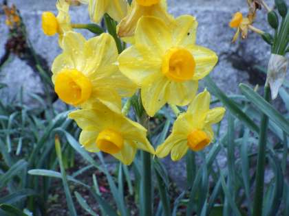美術室前の花壇の一角に自生するスイセンが、鮮やかな黄色の花を咲かせています。1・2年生の昇降口に続く通路からも見えるため、多くの生徒も目にしていると思います。