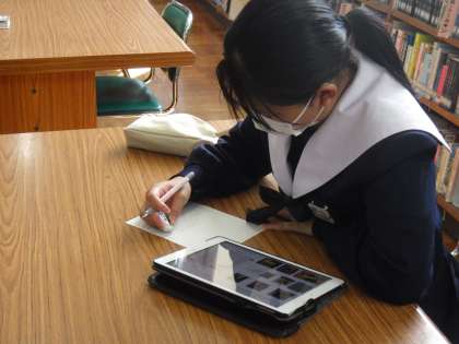 ビブリオバトルに向けて準備を進めていました。相手が読みたくなるような書評を考え、パフォーマンスの仕方も練習していきます。
