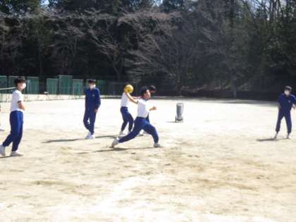 みんなが楽しみにしていた学級レクが行われていました。天気も気温も最高の屋外で、ドッヂボールを楽しんでいます。レベルを同じにしたチームでの対戦、小学校別での対抗戦など、チーム作りにも工夫が見られます。また、最後に女子一人が残った試合では、男子も気を使っての投球。そして投球も女子で… といった暗黙のルールも登場し、誰もがこの一年を懐かしむ活動になりました。