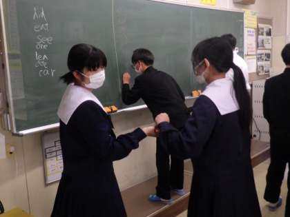 今回は、本日2回目の授業です。今年度の学習すべき内容が終わったため、チーム対抗で英語のゲームを行っていました。