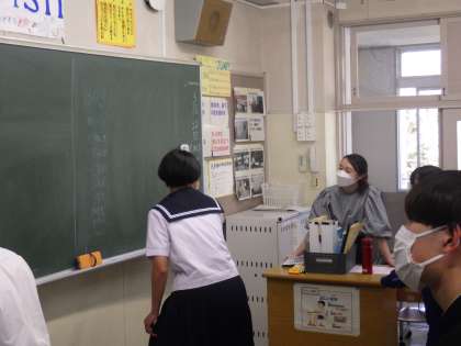今回は、本日2回目の授業です。今年度の学習すべき内容が終わったため、チーム対抗で英語のゲームを行っていました。