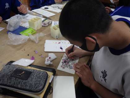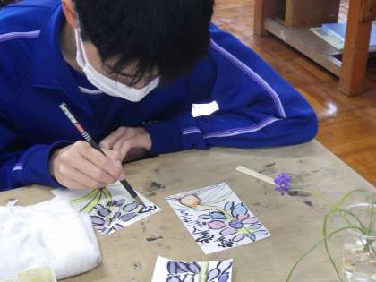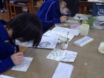 「絵手紙で春のメッセージを描こう」をテーマとした作品づくりも、いよいよ文字を入れる段階に入り、完成が目前となりました。