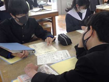 「コースターを幾何模様で飾ろう」をテーマにした作品づくりのためのアイデアスケッチに入っていました。この作品づくり、実は2年生になって取り組む予定のものです。今年度の授業最終日まで武術の時間ができたため、前倒しで活動に入っています。