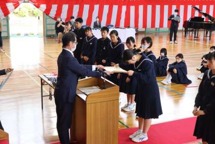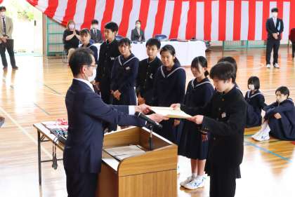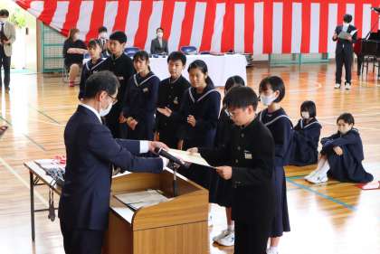 昨日、修了式に先立って行われた石野大賞の表彰の様子です。