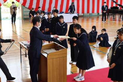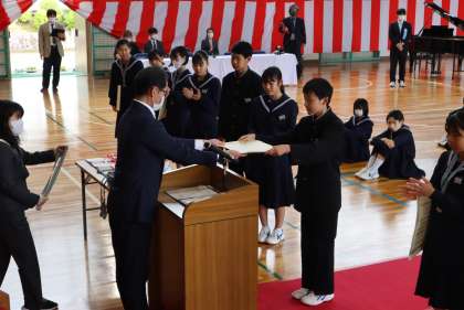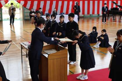 昨日、修了式に先立って行われた石野大賞の表彰の様子です。