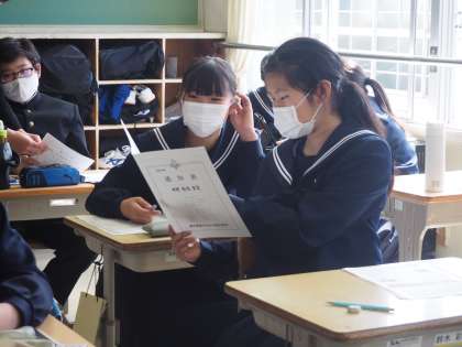 昨日、修了式後に行われた今年度最後の学活の様子です。