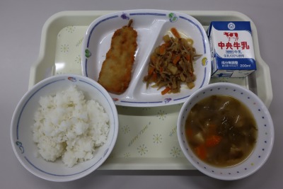 4/11 今日の給食 公開日 2023/04/11 更新日 2023/04/11 各学年から 今日の献立は、あおさ汁、ヘルシー五目きんぴら、にぎすフライ、ごはん、牛乳 でした。 エネルギー:789kcal