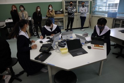 中学生の人気職業トップ5をタブレットPCで調べるなど、職業選択の