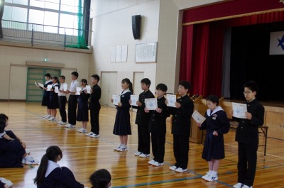 生徒会役員となる「代表委員会」の委員長、副委員長、役員の認証から