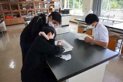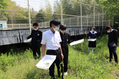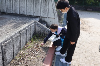 3,4組の理科の授業で、学校敷地内で花が咲く野草を