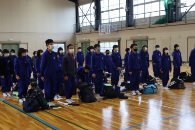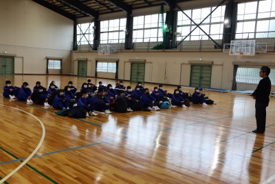 お迎えの保護者の方々が見守る中で、体育館で帰着式を行いました。