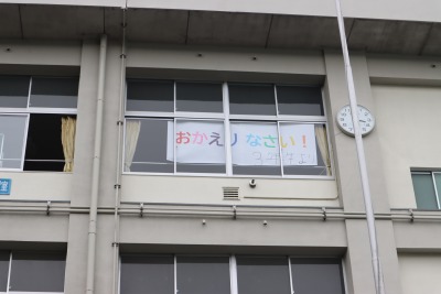 3年生からは、「おかえりなさい」のメッセージが掲示されました。