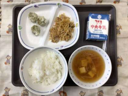 今日の献立は、五目スープ、キムチチャーハン、野菜入りしゅうまい、ごはん、牛乳  でした。   エネルギー:782kcal