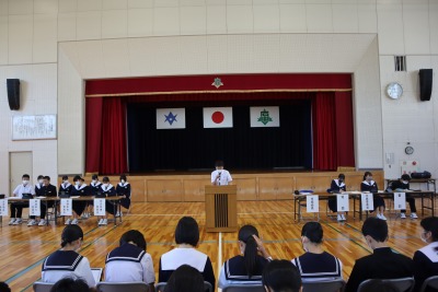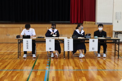 代表委員(生徒会役員)より今年度の活動方針が、各委員会の委員長より、前期の活動方針が示されました。