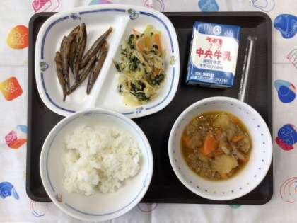 5/10 今日の給食 公開日 2023/05/10 更新日 2023/05/10 各学年から 今日の献立は、じゃがいものそぼろ煮、アーモンドあえ、きびなごのから揚げ、ごはん、牛乳 でした。 エネルギー:793kcal