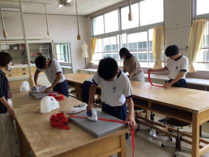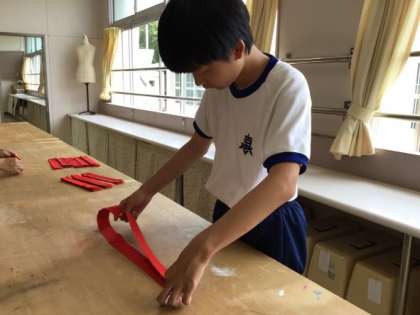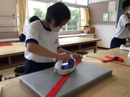 3,4組の生徒が自立活動で体育祭で使用したハチマキにアイロンがけをしました。しわを伸ばし、きちんとたたむところまで丁寧に作業しました。