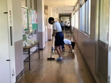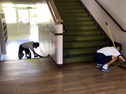 本年度は清掃の時間を昨年度よりも5分短くして10分間にしています。掃除が行き届いていない場所があったため、分担や取組の意識を見直しました。きれいな環境で、みんなが気持ちよく過ごすことができるように10分間を大切にしています。