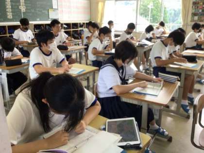 3年生は総合的な学習の時間を使って、3日間の動きや旅行中に大切にしたいこと等の確認をしていました。