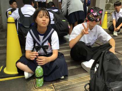 外国人観光客が多く、声をかけた生徒もいます。