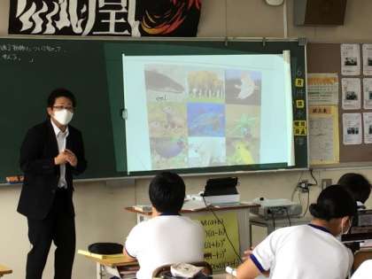3年生の英語では、「世界の絶滅のおそれのある動物について知り、自分たちにできることを考える」という学習に取り組んでいます。キュビナで復習をしたり、分からない単語の意味を推測して英文を読み、グループで確認する時間をとったりしながら学習を進めています。