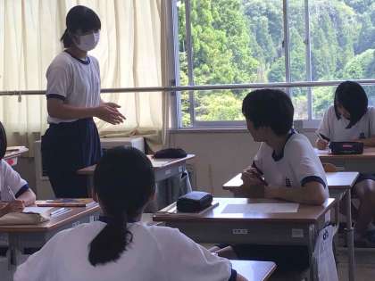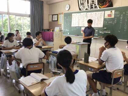 生徒の心を育てるために、道徳の授業を大切にしています。教務主任が率先して道徳の研究授業を3年生の教室で行いました。「言葉の向こうに」という題材からネット上で意見を伝える際に「だいじなこと」を考えました。生徒は、「ラインの使い方を考えたい」等、自分の生活を振り返りながら考えを深めていました。